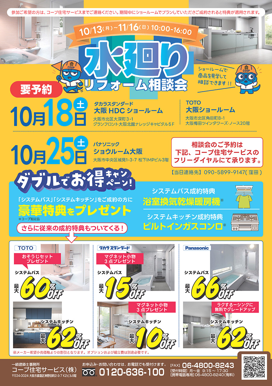 コープ住宅サービス職員常駐日:10月18日(土)・10月25日(土) 要予約