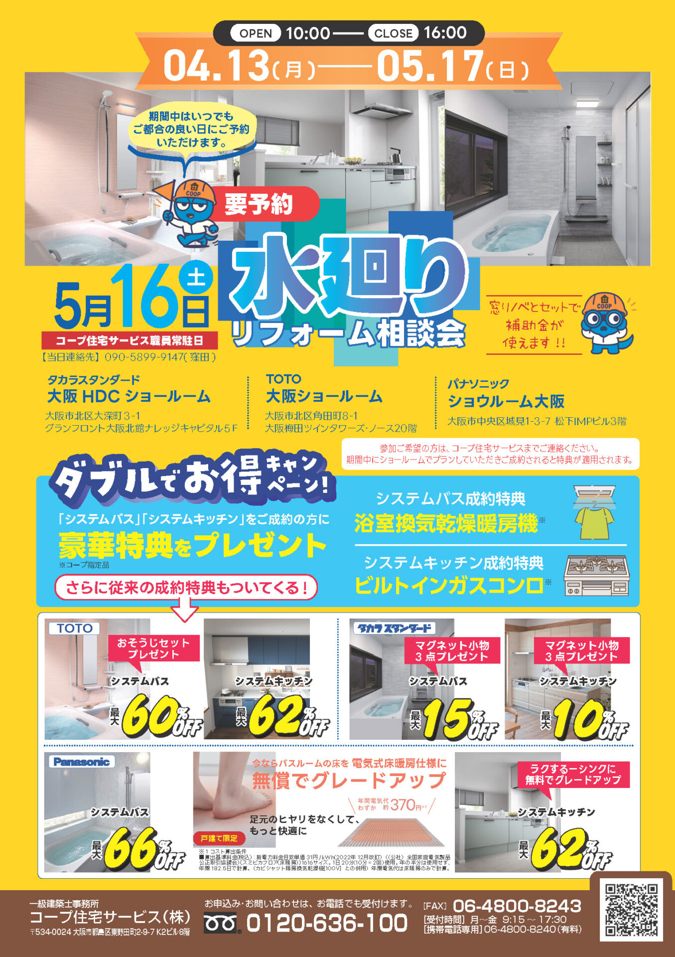 コープ住宅サービス職員常駐日:5月16日(土) 要予約