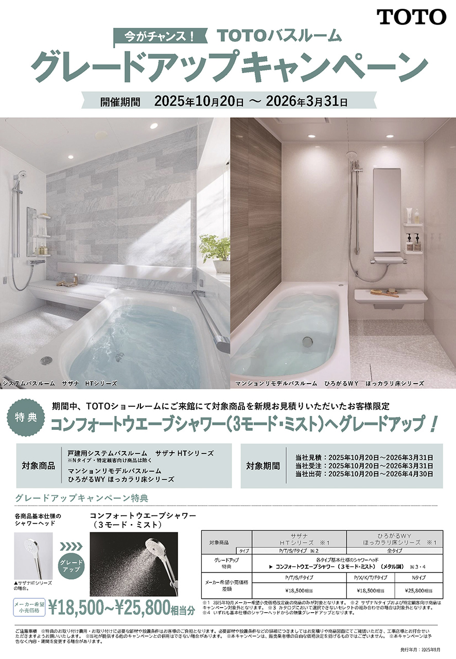 TOTOバスルーム グレードアップキャンペーンを開催いたします。