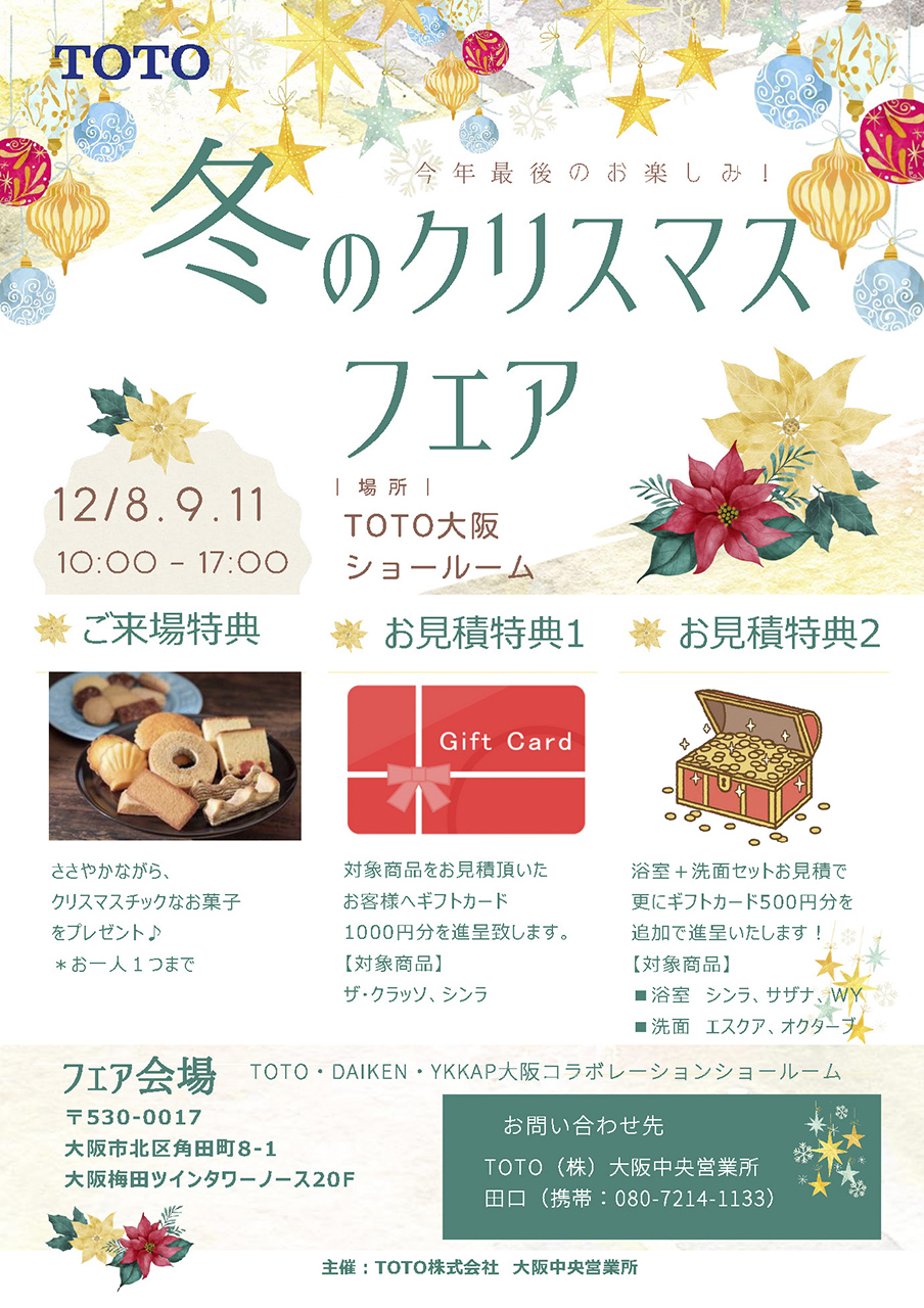 TOTO大阪ショールムにて、 クリスマスイベントを開催いたします。