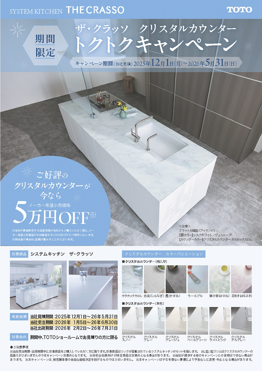 TOTO ザ・クラッソ クリスタルカウンター トクトクキャンペーンを開催いたします。