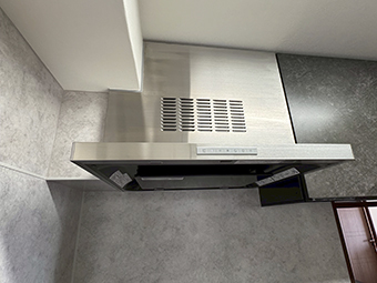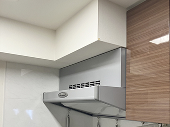 さらにレンジフードの幕板を加工し取り付けることで綺麗に仕上がりました。